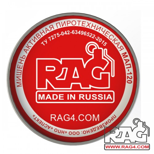 Объёмный по массе пиротехнический элемент RAG МАП-120, при попадании пули срабатывает со световой, звуковой и дымовыми эффектами, визуализируя попадание в мишень невооружённым глазом.